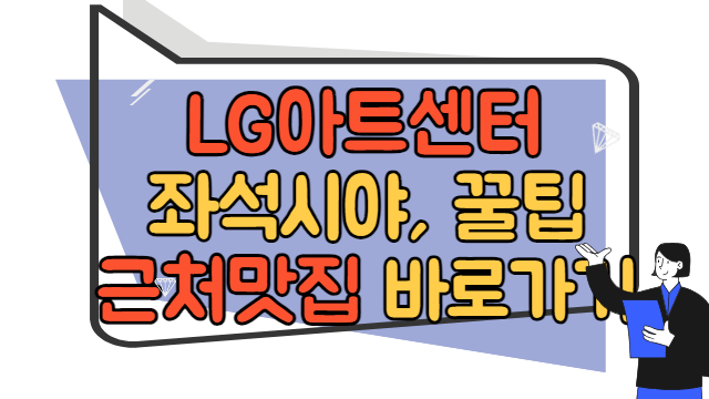 좌석 시야와 꿀팁은 1층에서는 10열 이하를 선택하는 것이 좋고, 1층은 단층이 낮아서 주의가 필요합니다. 2층에서는 1열을 피하고 외곽지역 부스가 좋은 시야를 제공합니다. 3층은 무대 전체를 볼 수 있지만 집중도는 낮을 수 있습니다. 이용 전 필수 정보: 지하철 연결 통로를 통해 빠르게 이동할 수 있습니다. 티켓 발권과 주차 정산은 미리 처리해두는 것이 편리합니다. 튜브로 유명한 통로에서 사진을 찍어 기념하는 것이 좋습니다. 매점과 카페는 매점은 티켓 발권 옆에 위치하며 음료와 간식을 판매합니다. 2층에 위치한 카페인 TYPE에서는 디저트와 음료를 즐길 수 있습니다. 꿀팁과 편의 서비스은어셔에게 음료나 음식을 맡기고 입장할 수 있습니다. 인증사진을 원한다면 종이 티켓을 선택하여 수령합니다. 예매는 LG아트센터 공식 사이트를 통해 수수료를 피해 진행할 수 있습니다. 기타 꿀팁은입장 시 자연스럽게 기계 쪽으로 이동하여 빠르게 입장할 수 있습니다. 공연 전 알림톡에서 티켓 종류를 선택할 수 있으며, 인증사진을 남기고 싶다면 종이 티켓을 선택하는 것이 좋습니다.